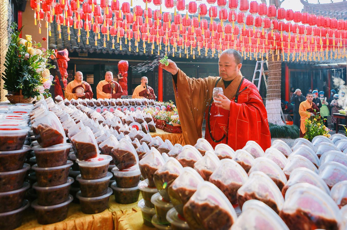 本寺已连续多年开展腊八施粥活动,每年都会熬制数万份腊八粥,通过不同的形式免费发放,开展这样的活动。